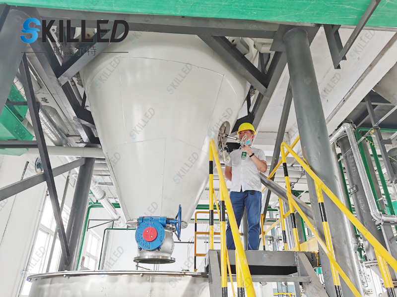 3、为了使整个流程连续起来,并同时减少物料的泄漏损失,干燥器的固体出料流量是可控的。这样能够减少清洁区人工操作装卸的工作量,及防止物料外冲现象。